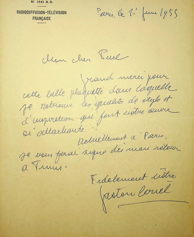 Gaston Criel (1913-1990), poète, écrivain. L.A.S., Paris, 3 novembre 1953, 1p in-4. Au poète de l'école de Rochefort Gaston Puel (1924-2013). Courte lettre amicale. [431]