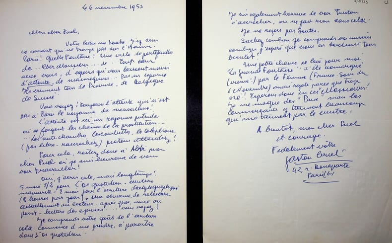 Gaston Criel (1913-1990), poète, écrivain. L.A.S., Paris, 3 novembre 1953, 1p in-4. Au poète de l'école de Rochefort Gaston Puel (1924-2013). Courte lettre amicale. [431]