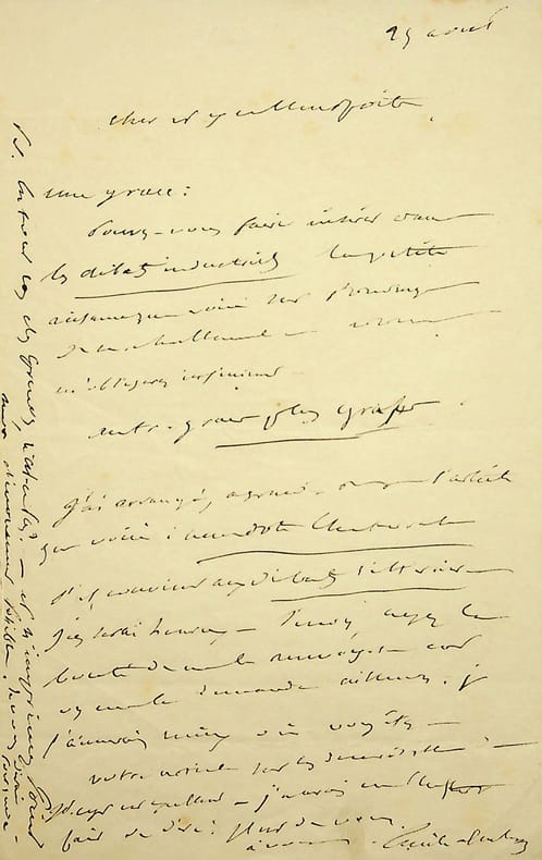 Emile Deschamps (1791-1871), poète. L.A.S., 25 août, 1p in-8. À un poète. À propos d'un article à insérer. [432]