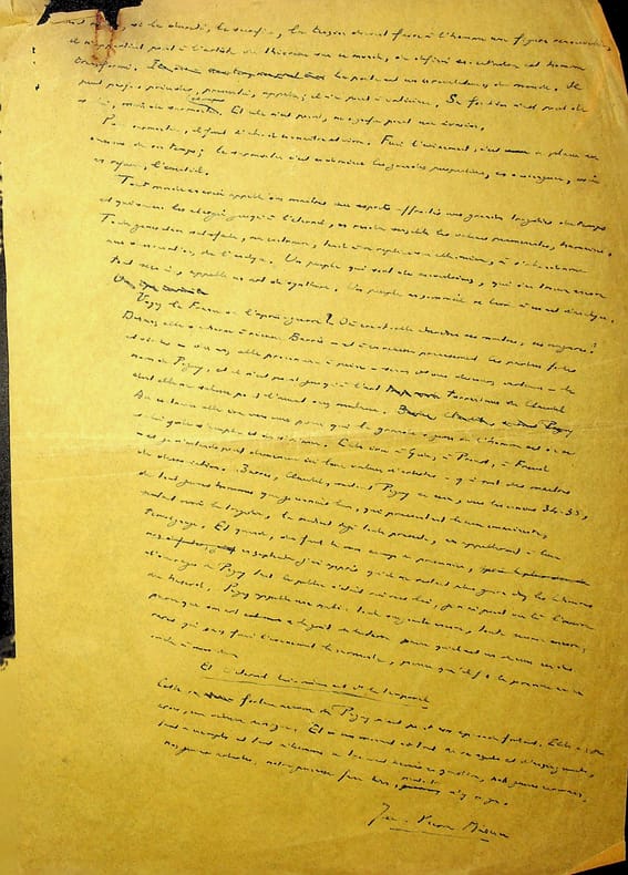 Jean-Pierre Maxence (1906-1956), écrivain, journaliste. Manuscrit autographe signé, sd [1941?], 3p in-4. Long article, patte de mouche, titré : « Révision des Valeurs - Fuir l'évènement : NON. Le comprendre pour le surmonter », probablement destiné à un journal en 1941, possiblement la revue Idées dans laquelle Maxence tenait une revue littéraire. Dans ce long article, il critique l'ouvrage de Jouvenel, Après la défaite, et développe une idée de l'engagement intellectuel face à la tragédie. Il cite souvent Péguy. Petit manque dû à un trombone. Rare manuscrit. [432]