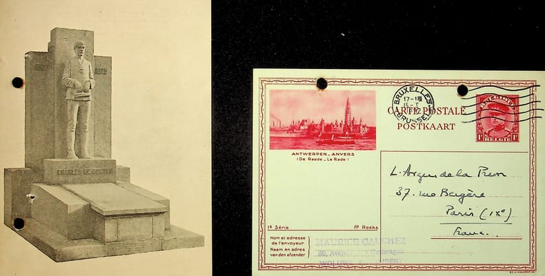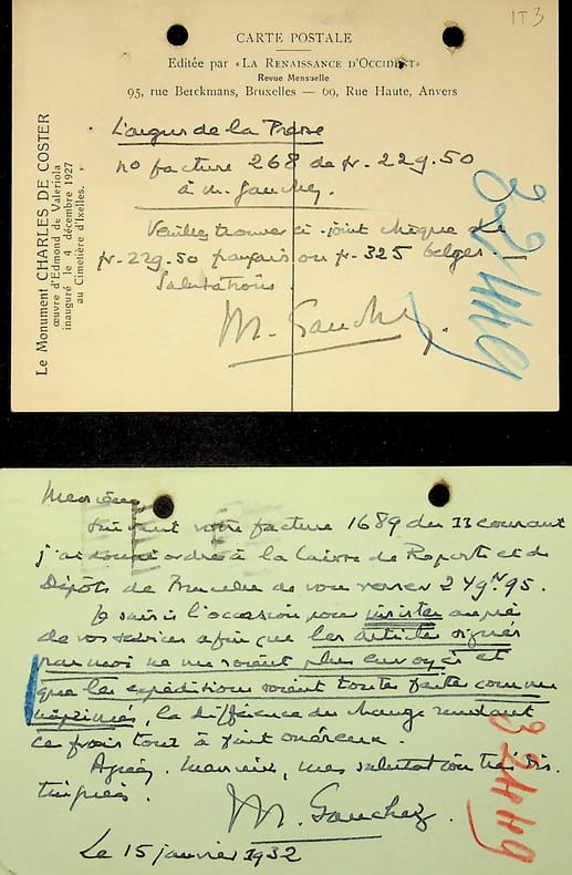 Maurice Gauchez (1884-1957), écrivain, poète belge. 2 L.A.S., 1932 & sd, 2p in-12. Deux courriers adressés à l'Argus de la Presse qui étaient joints au paiement de factures (abonnement). Peu commun. [433]