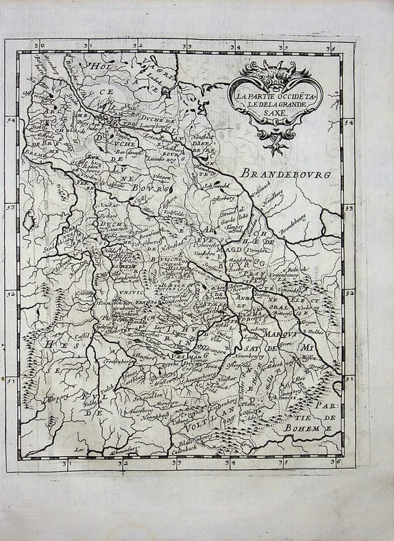 [Philippe Briet, Parallela geographiae veteris et novae] la partie occidentale de la grande Saxe - Allemagne Gravure originale, 1649, environ 240*170mm. Gravure tirée de l'ouvrage du savant jésuite Philippe Briet (1601-1668) publié en 1648-1649. Texte au dos. [435]