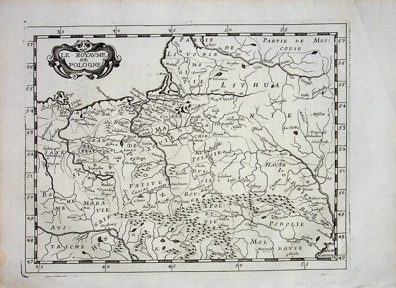 [Philippe Briet, Parallela geographiae veteris et novae] le royaume de Pologne. Gravure originale, 1649, environ 240*170mm. Gravure tirée de l'ouvrage du savant jésuite Philippe Briet (1601-1668) publié en 1648-1649. Texte au dos. [435]