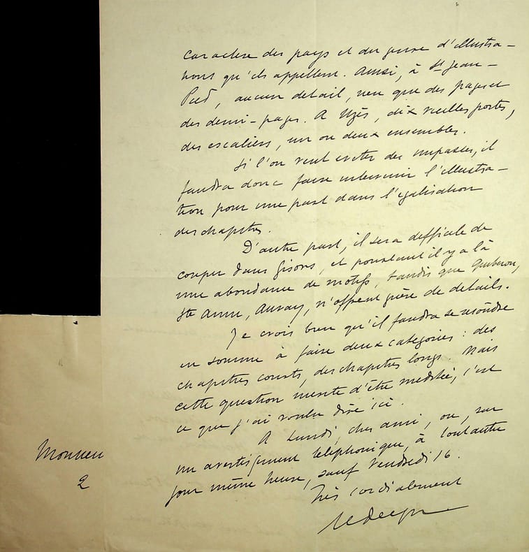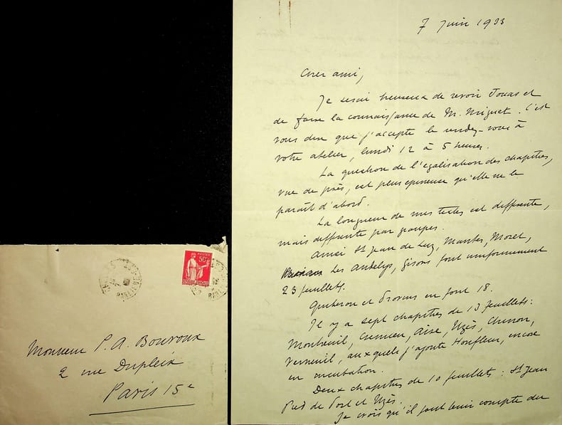 Emile Sedeyn (1871-1946), journaliste, écrivain, rédacteur en chef du Figaro illustré. L.A.S. + enveloppe, 7 juin 1933, 2p in-4. Au peintre Paul-Adrien Bouroux (1878-1967). Belle lettre à propos de l'édition des Petites villes de France et dans laquelle il accepte un rendez-vous. [440]