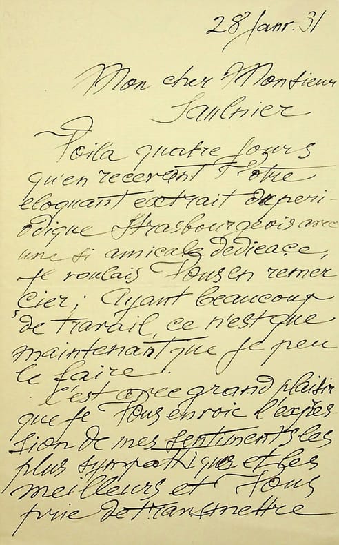 David Widhopff (1867-1933), peintre, affichiste français d'origine ukrainienne. L.A.S., 28 janvier 1931, 1p 1/2 in-8. Au collectionneur René Saulnier. Jolie lettre amicale de remerciements. [441]