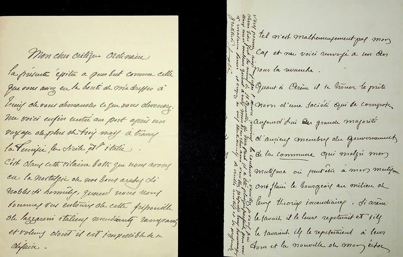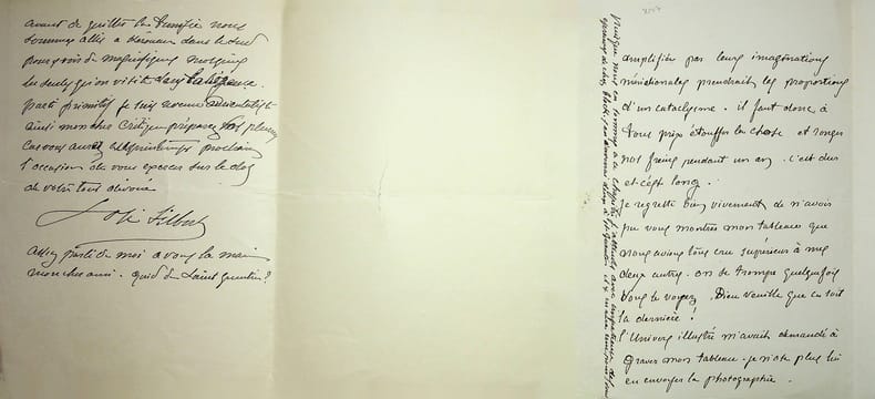 Lettre autographe signée de Colette à son ami, auquel elle adresse des reproches plutôt virulents assaisonnés d’une pointe d’argot : « Tu es un mufle et un pas grand chose et un veau et un Marlou, puisque tu ne m’as pas répondu. On t’en reflanquera de la prose remarquable ! Mais situ crois que ça va m’empêcher de t’utiliser ! Tu vas immédiatement filer chez un bouquiniste quelconque et m’acheter La Terre d’un jeune auteur peu connu et qui sonne de grandes espérances, E. Zola. (On ne fait jamais de Z majuscules, on s’en sert si peu. Seulement, qu’on vienne à écrire Zola ou Zoroastre, et nous voilà tout bêtes — toi surtout —. Aussi, quand Willy sera tout à fait ruiné, j’ouvrirai un cours de Majuscules.) »Colette avait très jeune, découvert et aimé Émile Zola. C’est sur un ton tout à fait ironique qu’elle enjoint son ami à lire (ou relire) le grand auteur !La fin de la lettre est très théâtrale, digne de sa réputation de jeune sauvageonne : « Adieu. Je ne saurais, vu ta conduite, te donner ma main à baiser. Un geste bref de la tête, c’est tout. Colette. Ma signature a bien l’air vexé, s’pas ? »