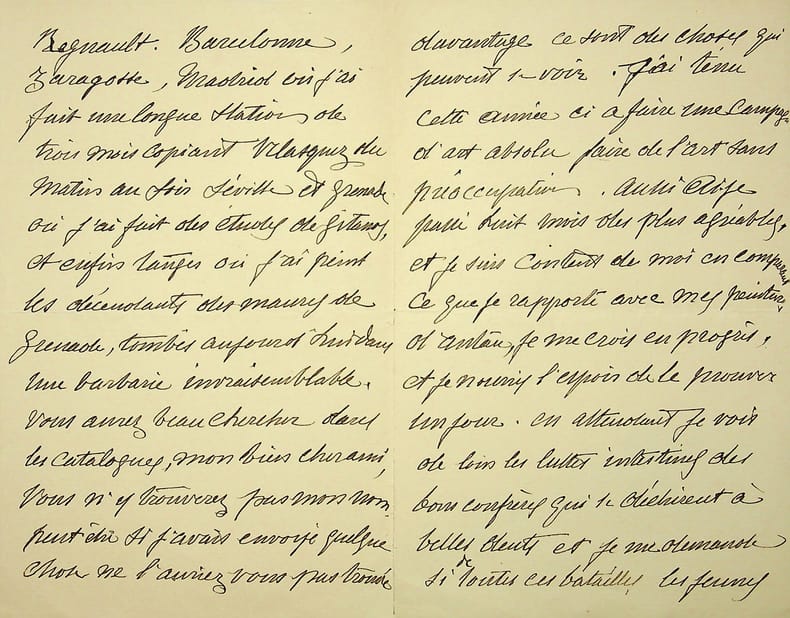 José Silbert (1862-1936), peintre. L.A.S., Aix [en Provence], sd [vendredi], 4p in-8. Longue lettre amicale au retour d'un voyage en Espagne, parlant des « descendants des maures de Grenade, tombés aujourd'hui dans une barbarie invraisemblable ». [442]