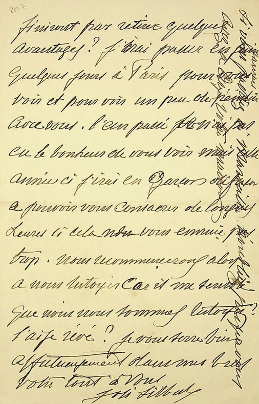 Lettre autographe signée de Colette à son ami, auquel elle adresse des reproches plutôt virulents assaisonnés d’une pointe d’argot : « Tu es un mufle et un pas grand chose et un veau et un Marlou, puisque tu ne m’as pas répondu. On t’en reflanquera de la prose remarquable ! Mais situ crois que ça va m’empêcher de t’utiliser ! Tu vas immédiatement filer chez un bouquiniste quelconque et m’acheter La Terre d’un jeune auteur peu connu et qui sonne de grandes espérances, E. Zola. (On ne fait jamais de Z majuscules, on s’en sert si peu. Seulement, qu’on vienne à écrire Zola ou Zoroastre, et nous voilà tout bêtes — toi surtout —. Aussi, quand Willy sera tout à fait ruiné, j’ouvrirai un cours de Majuscules.) »Colette avait très jeune, découvert et aimé Émile Zola. C’est sur un ton tout à fait ironique qu’elle enjoint son ami à lire (ou relire) le grand auteur !La fin de la lettre est très théâtrale, digne de sa réputation de jeune sauvageonne : « Adieu. Je ne saurais, vu ta conduite, te donner ma main à baiser. Un geste bref de la tête, c’est tout. Colette. Ma signature a bien l’air vexé, s’pas ? »