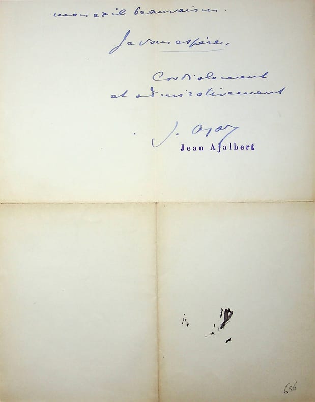 Jean Ajalbert (1863-1947), écrivain, membre de l'Académie Goncourt. L.A.S.,21 janvier 1936, 1p 1/2 in-4. A l'écrivain membre de l'Académie Goncourt Léo Larguier (1878-1950). « Mon cher Poète ami, Voulez-vous accepter de déjeuner, dans ma solitude, avec M. M. du Gard, le 31 du mois, à 12h œ - en venant avant ou demeurant un peu après pour voir les épaves de peinture ou de chinoiseries sauvées des [mot illisible]. Je serais heureux de cette rencontre tardive que mes sympathies pour votre oeuvre ne m'a pas permis de provoquer dans mon exil beauvaisin. Je vous espère, Cordialement et admirativement J. Ajal [cachet Jean Ajalbert] ». [448]