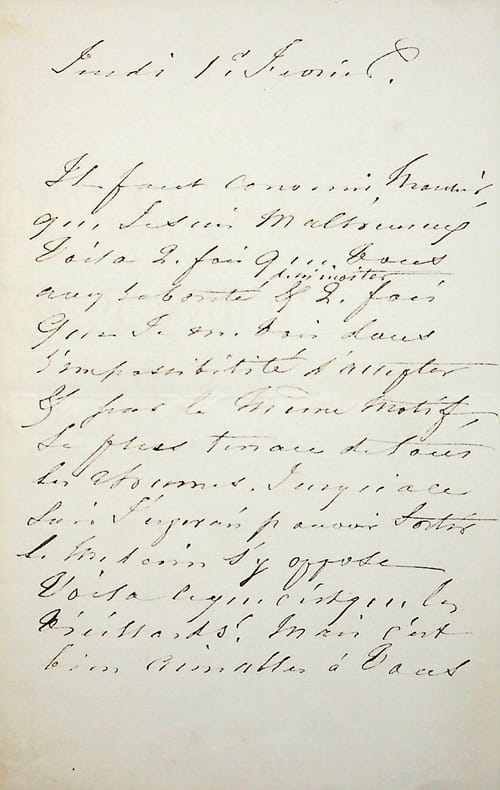 Eugène Lami (1800-1890), peintre, costumier, décorateur. L.A.S., jeudi 1er février, 1p 1/2 in-8. Il refuse une deuxième fois l'invitation de son correspondant. [451]