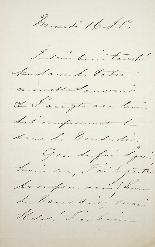 Eugène Lami (1800-1890), peintre, costumier, décorateur. L.A.S., mardi 16, 2p in-8. Il accepte un dîner le vendredi. [451]