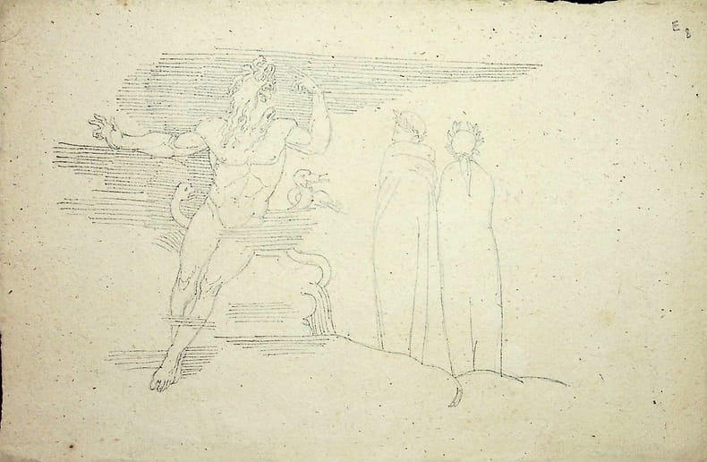 [d'après] John Flaxman (1755-1826), dessinateur, sculpteur. Dessin original anonyme, XIXe, environ 155*235mm. Dessin d'après un dessin de Flaxman. [451]