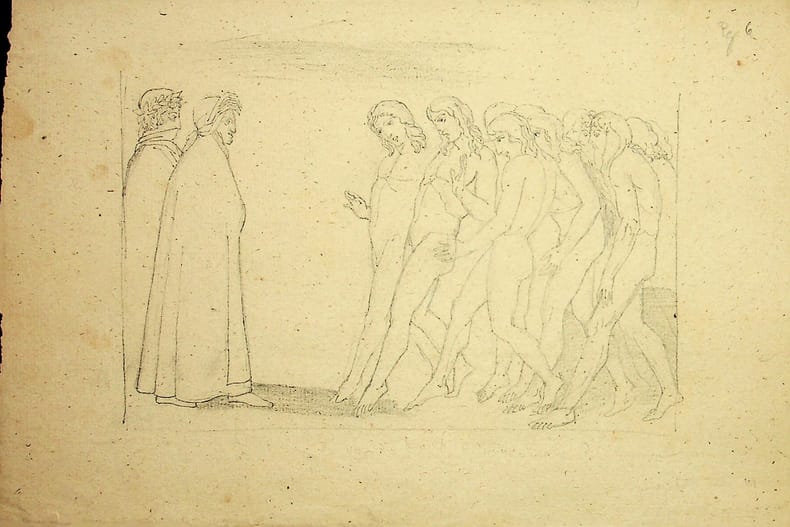 [d'après] John Flaxman (1755-1826), dessinateur, sculpteur. Dessin original anonyme, XIXe, environ 155*235mm. Dessin d'après un dessin de Flaxman. [451]