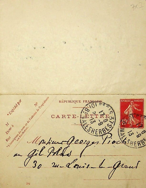 Gabriel Fauré (1845-1924), compositeur, organiste, pianiste. L.A.S., 17 septembre 1913, 1p in-12. Au journaliste Georges Pioch (1873-1953). « Cher ami, Je ne vous savais pas absent et je vous avais appelé à mon secours hier. Je suis bien content de penser que vous serez là jeudi soir. Je voudrais bien, vendredi ou samedi, que vous puissiez me faire le plaisir de venir déjeuner avec moi pour que nous puissions causer un peu. Cela me ferait une bien véritable joie !! Bien affectueusement à vous. Gabriel Fauré ». [452]