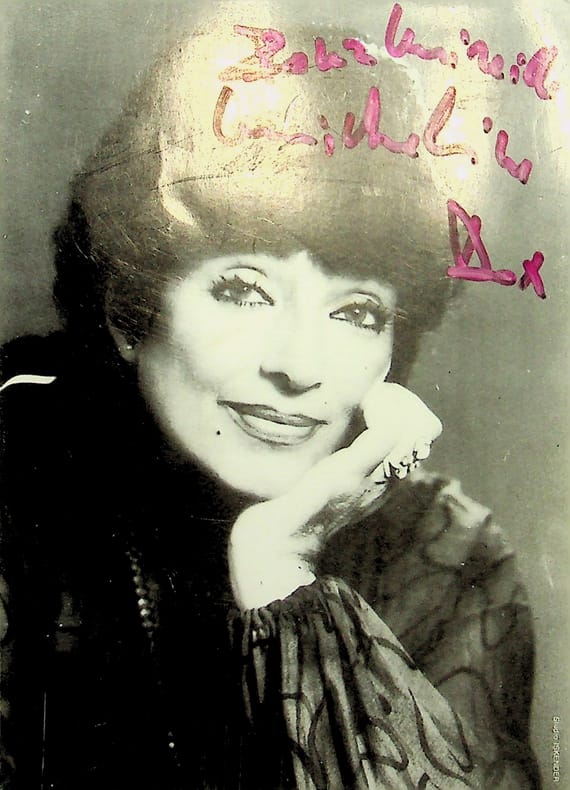 Micheline Dax (1924-2014), actrice, chanteuse. Photographie signée, environ 18*13cm. Photographie (héliogravure) du studio Iskender portant la mention autographe « Pour Mireille, Micheline Dax ». [136]
