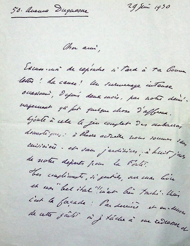 Henri Lavedan (1859-1940), écrivain, journaliste, membre de l'Académie française. L.A.S., 29 juin 1930, 3p in-8. Au docteur et écrivain Maurice de Fleury (1860-1931). Longue et belle lettre sur son état de santé et de fatigue. [454]