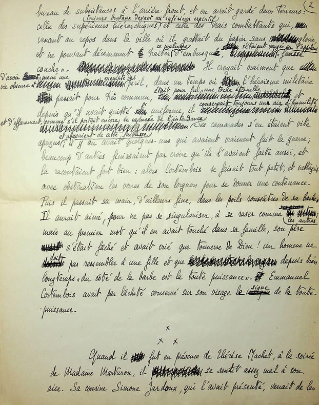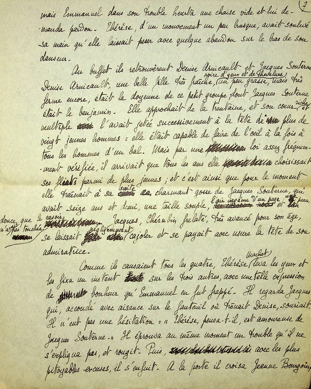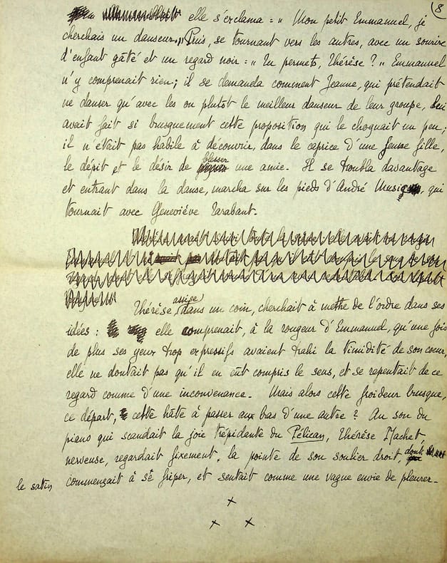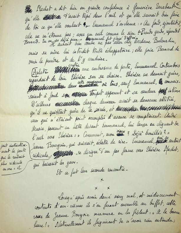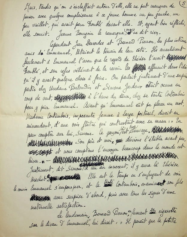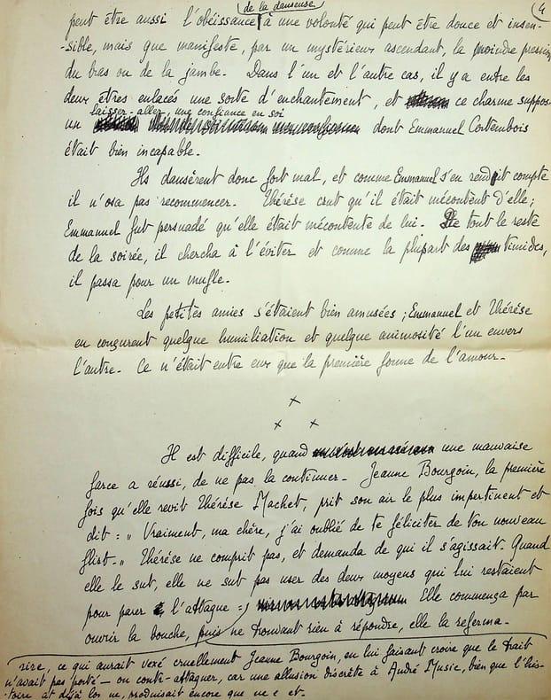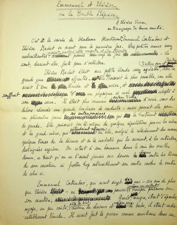 René Maublanc (1891-1960), philosophe, écrivain, antifasciste. Manuscrit autographe, sd, 8p in-4. Beau manuscrit d'une nouvelle titrée « Emmanuel et Thérèse ou la Double Méprise », avec de très nombreuses corrections. il est dédié à une amie, Thérèse Vivier. Joli manuscrit. [457]