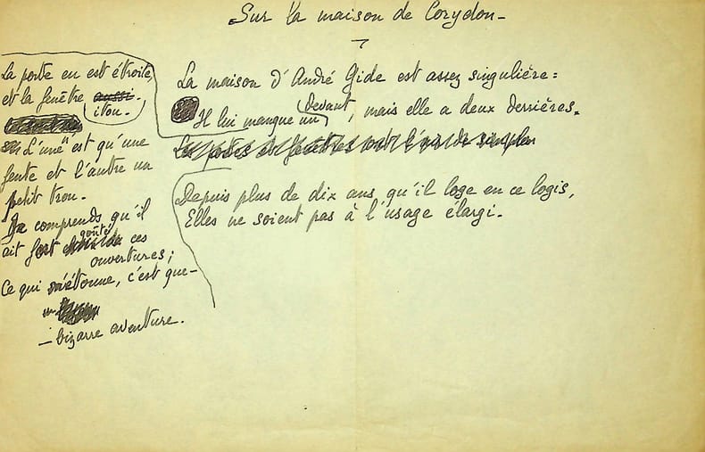 René Maublanc (1891-1960), philosophe, écrivain, antifasciste. Poème autographe, sd, 1p in-8. Petit poème, « Sur la maison de Corydon », référence à l'ouvrage d'André Gide publié en 1911. [458]