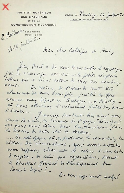 Paul Le Rolland (1887-1957), communiste, directeur général de l'enseignement supérieur. L.A.S., Pontivy, 14 juillet 1951, 1p 1/2 in-8. A René Maublanc (1891-1960), philosophe, écrivain, antifasciste. Il regrette de ne pas avoir pu assister à son anniversaire. [459]