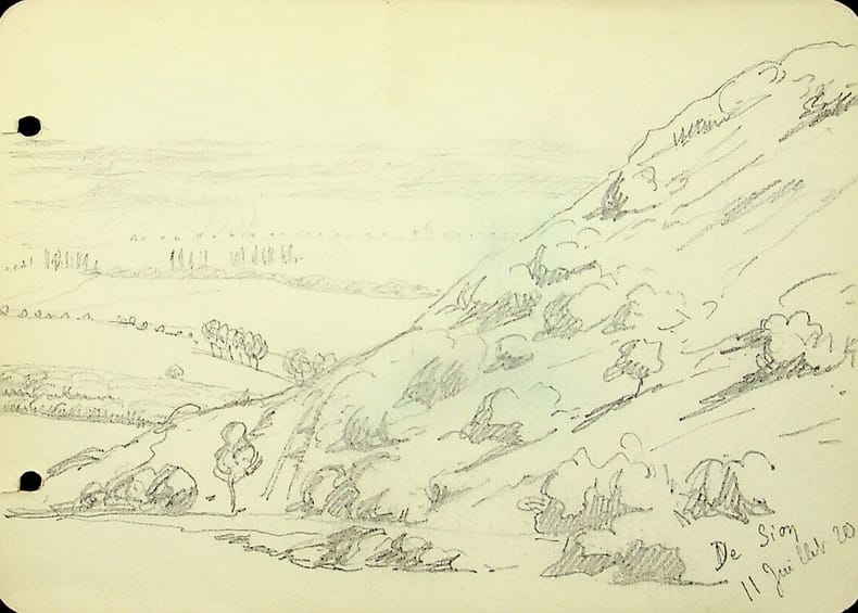 René Maublanc (1891-1960), philosophe, écrivain, antifasciste. Dessin original, 11 juillet 1920, environ 120*170mm. Colline de Sion Vaudémont. [461]