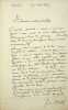 Pensée et courrier adressés à Léon Lang.Léon Lang, fondateur de la Société Godefroy Engelmann à Mulhouse, a demandé à divers artistes une pensée personnelle signée sur lart et un portrait de lartiste en vue dune exposition. Nous vous proposons ici cette pensée accompagnée d'une lettre autographe de 2 feuillets écrits au recto uniquement, reproduction d'un portrait de l'artiste en photographie jointe.