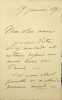 Pensée et courrier adressés à Léon Lang.Léon Lang, fondateur de la Société Godefroy Engelmann à Mulhouse, a demandé à divers artistes une pensée personnelle signée sur lart et un portrait de lartiste en vue dune exposition. Nous vous proposons ici cette pensée accompagnée d'une lettre autographe de 2 feuillets écrits au recto uniquement, reproduction d'un portrait de l'artiste en photographie jointe.