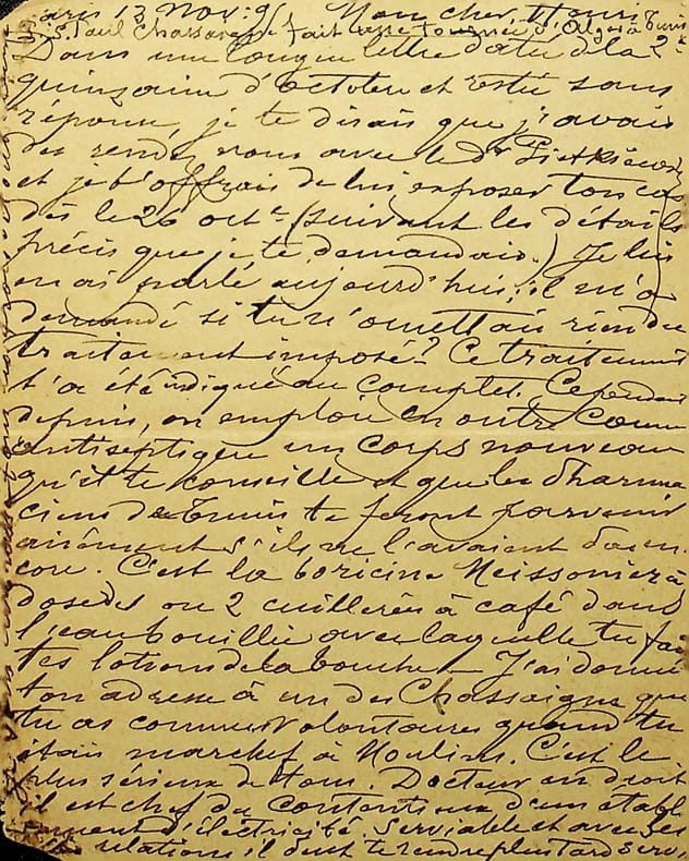 Marius Perret (1851-1900), peintre de marines, peintre orientaliste, mort à Java. L.A., Paris, 13 novembre 1895, 1p in-12. Longue lettre à Henri Perret, certainement un membre de sa famille (son frère ?). A propos de la santé de son correspondant et d'un traitement possible. [462]
