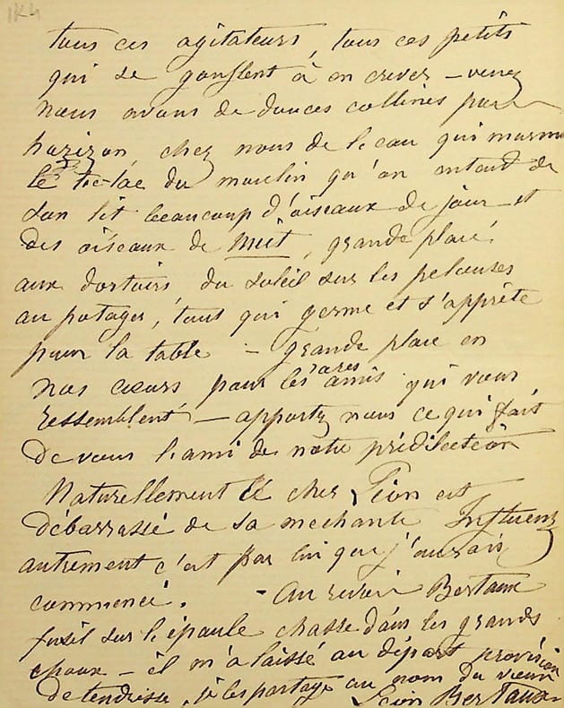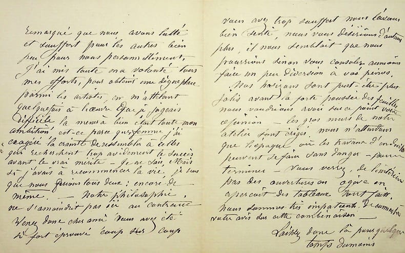 Léon Bertaux (1827-1915), sculpteur. L.A.S., Lyon, 20 mai, 4p in-12. Au peintre Charles Beauverie (1839-1923). Belle lettre au moment du départ du couple Bertaux au moment où son épouse Hélène exposait à Lyon. [462]