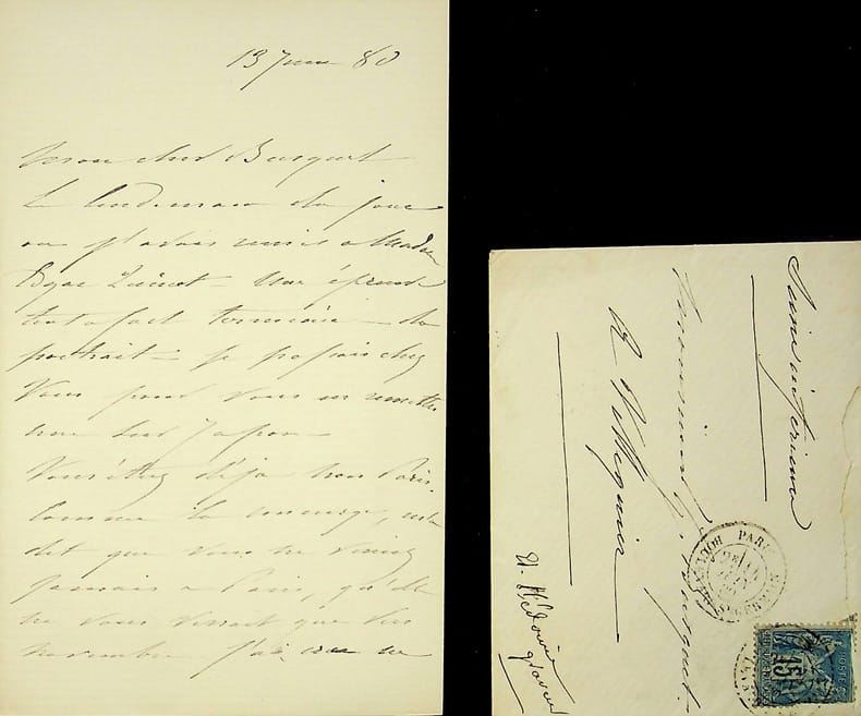 Edmond Hédouin (1820-1889), peintre, graveur. L.A.S. + enveloppe, 13 juin 1880, 2p in-8. A Alfred Busquet (1819-1883). A propos d'une épreuve du portrait d'Edgar Quinet qu'il souhaite lui donner.