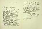0 Une lettre manuscrite de 2 pages signée par Paul Hervieu, avec une en-tête imprimée du monogramme de l'auteur et de l'adresse du 25 avenue du Bois de Boulogne. '' Madame, je suis très touché de votre charmant souvenir...''. Feuillet papier de deuil (filet noir d'encadrement sur les bordures), daté du 1er janvier 1898. Feuillet double de format: 180mm x 110mm). Paul Hervieu, Neuilly-sur-Seine 1857 - Paris 1915, romancier et auteur dramatique français