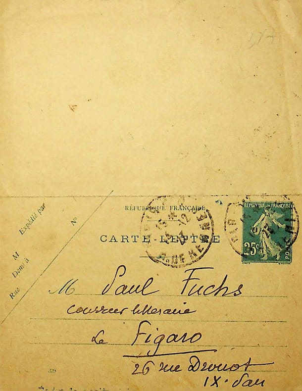 Maurice Larrouy (1882-1939), écrivain. L.A.S., Meung-sur-Loire, 16 octobre 1923, 2p in-8. Au poète et journaliste Paul Fuchs (1864-1940). Il lui répond et le remercie tardivement car il est à la campagne pour achever son roman. Il le remerciera de vive voix à son retour à Paris. [470]