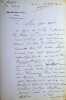 André Lemoyne (1822-1907), poète, écrivain. L.A.S., sd [vendredi, 186.], 1p in-8. Entête de la librairie Firmin Didot, où il était chef de publicité. Probablement au journaliste Jules Castagnary (1830-1888). « Mon cher ami, Hier soir à neuf heures, je n'ai trouvé que votre lettre, en revenant de chez une vieille dame de la Saintonge où j'avais dû dîner. Je vous avoue que j'en ai mal dormi, et ce matin, je suis encore tout chiffonné de ce contre-temps que je n'avais pu prévoir. J'espère bien, mon cher ami, que cela ne vous empêchera pas (si vous êtes libre cette fois) d'assister à notre réunion de Plomar le Ier samedi de mai (le 6 du mois prochain) à sept heures. Pardonnez-moi et croyez bien à tous mes regrets. Lemoyne ». [466]
