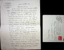 Jean Royère (1871-1956), poète, éditeur. L.A.S. + enveloppe, 7 mars 1938, 2p in-4. Au poète Saint-Georges de Bouhelier (1876-1947). Très intéressante lettre au sujet de la publication du livre de Léon Lemonnier (1890-1953) sur Bouhelier. Royère y détaille longuement comment l'ouvrage sera publié par Meissen, avec un premier tirage à 500 exemplaires avant un autre à 1500. Il a aussi reçu son Napoléon et le lire bientôt. Belle lettre. [466]