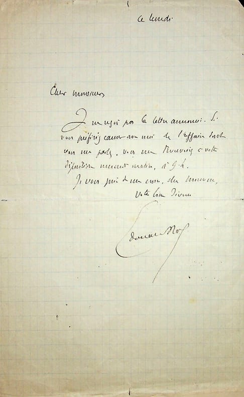 Edouard Rod (1857-1910), écrivain suisse. L.A.S., sd [lundi], 1/2p in-8. Courte lettre pour un rendez-vous. [467]