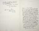 1 L.A.S. (135 x 210), 2 pp., à l'entête du 12, quai de Passy, adressée à Lucien Descaves. Très bon état.