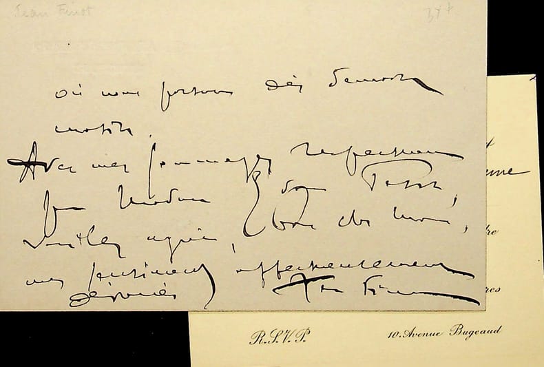 Jean Finot (1856-1922), sociologue, écrivain, journaliste. L.A.S, sd, 2p in-12. A l'écrivain Edouard Petit (1858-1917). Petit courrier de remerciements. On joint un petit carton d'invitation. [470]