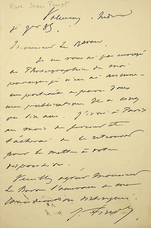 Jean Finot (1856-1922), sociologue, écrivain, journaliste. L.A.S, sd [ca.1900?], 1p in-8. A un baron à qui il ne peut pas fournir de photographie récente de lui. [470]