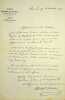 Michel Masson (1800-1883), écrivain, journaliste. L.A.S., Paris, 10 décembre 1862, 1p in-8. Entête de la Société des Gens de Lettres dont il est membre du comité et président honoraire. A l'écrivain Roger de Beauvoir (1807-1866). « Monsieur et cher confrère, La commission chargée de vous entendre contradictoirement avec M. Ponson du Terrail s'est ajournée à la date de la séance du comité qui suivra la première quinzaine de janvier prochain. J'aurai l'honneur de vous donner avis du jour et de l'heure de la convocation. Agréez l'assurance de mes sentiments les plus distingués. Michel Masson ». [472]