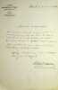 Michel Masson (1800-1883), écrivain, journaliste. L.A.S., Paris, 27 novembre 1862, 1p in-8. Entête de la Société des Gens de Lettres dont il est membre du comité et président honoraire. A l'écrivain Roger de Beauvoir (1807-1866). « Mon cher confrère, J'ai l'honneur de vous informer que je viens d'écrire à M. Ponson du Terrail pour rappeler à son souvenir que la commission se réunira lundi prochain, 1er décembre, à une heure et demi (heure précise) pour connaître officiellement votre différend. Veuillez ne pas l'oublier. Agréez l'assurance de mes sentiments les plus distingués. Michel Masson ». [472]