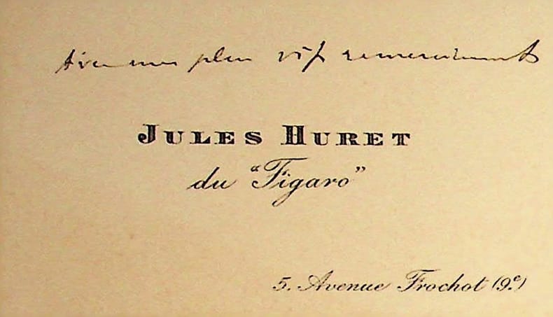 Jules Huret (1863-1915), écrivain, journaliste. C.A., sd, 1 ligne. « Avec mes plus vifs remerciements ». [473]