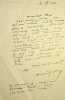 1 L.A.S. (157 x 120), 1 page, à l'entête du 20, rue de l'assomption. Mauvais état, un coin gras et trace d'adhésif avec déchirure.