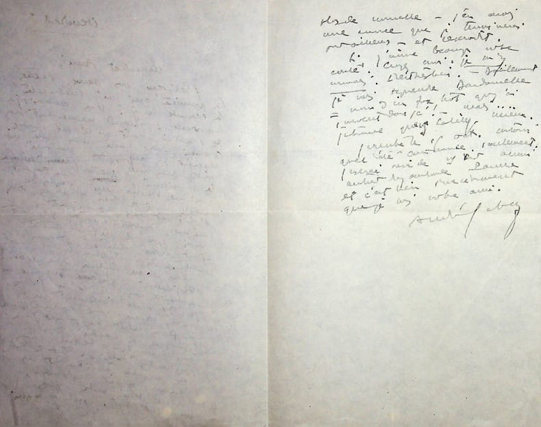 André Lebey (1877-1938), poète, écrivain, homme politique. L.A.S., sd [vendredi], 1p 1/2 in-8. A l'écrivain Henri Duvernois (1875-1937). Longue lettre difficile à déchiffrer. [473]