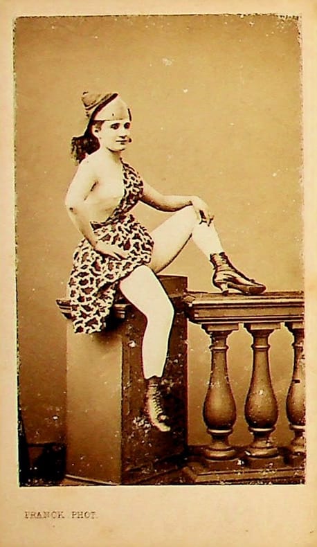 Anne-Victoire Clément dite Moïna Clément (1845-ap.1909), actrice. Photographie CDV, ca.1870. Photographie originale la représentant dans une tenue de théâtre, prise par Franck, rue Vivienne à Paris. A rapprocher d'une photo similaire conservée par le musée Carnavalet (côte PH53996). [478]