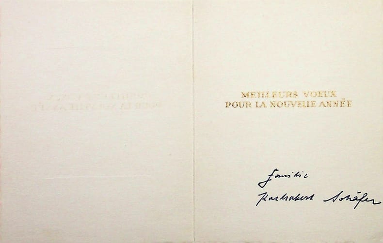 Hermann Huffert (1904-1995), artiste allemand, graveur. Gravure sur bois signée, 1968, environ 105*145mm. Carte de voeux pour Fritz et Friedel Born. Elle est signée « HUFF » dans la planche et « Huffert » au crayon. [481]