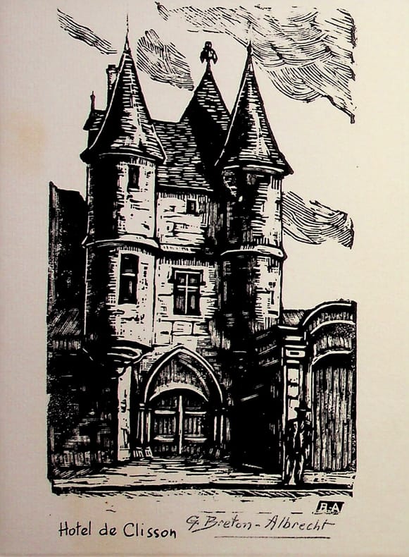 Gustave Breton-Albrecht (1900-1981), peintre, graveur. Gravure sur bois signée, sd, environ 165*125mm. Gravure représentant l'hôtel de Clisson à Paris (quartier du Marais). [479]