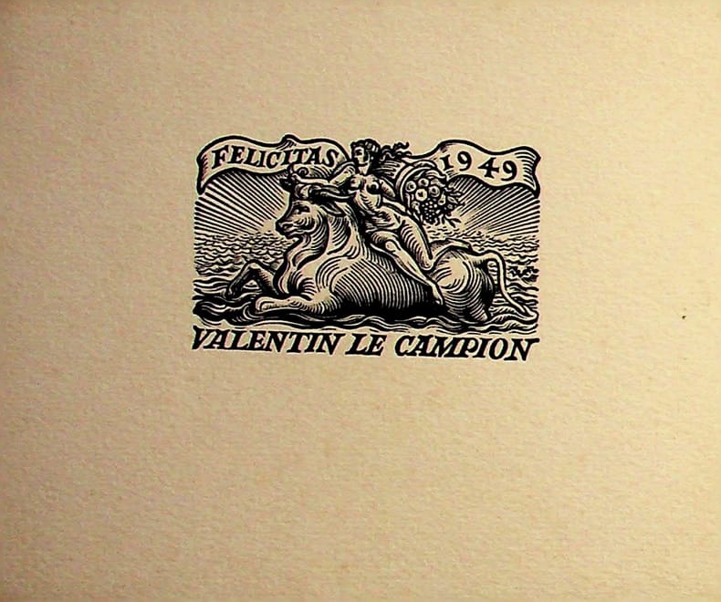 Valentin Le Campion (1903-1952), graveur sur bois, illustrateur. Bois gravé, 1949, environ 100*120mm. Voeux pour 1949. [480]