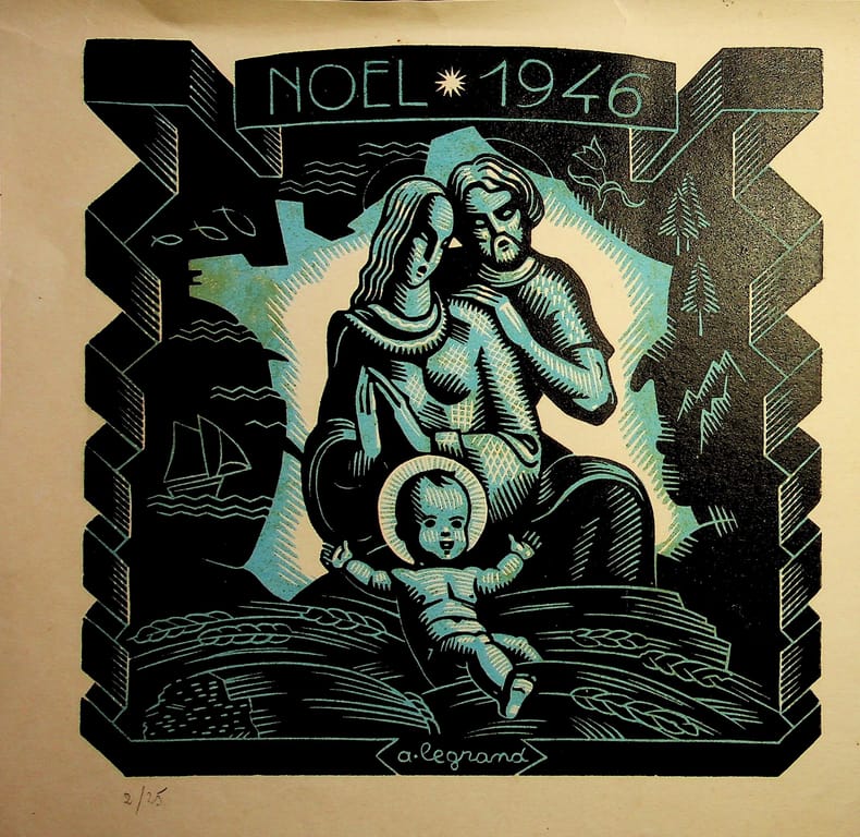 André Legrand (1902-1947), peintre, graveur, illustrateur. Gravure sur bois numérotée, 1946, environ 230*230mm. Gravure pour Noël 1946, numérotée 2/25. [480]
