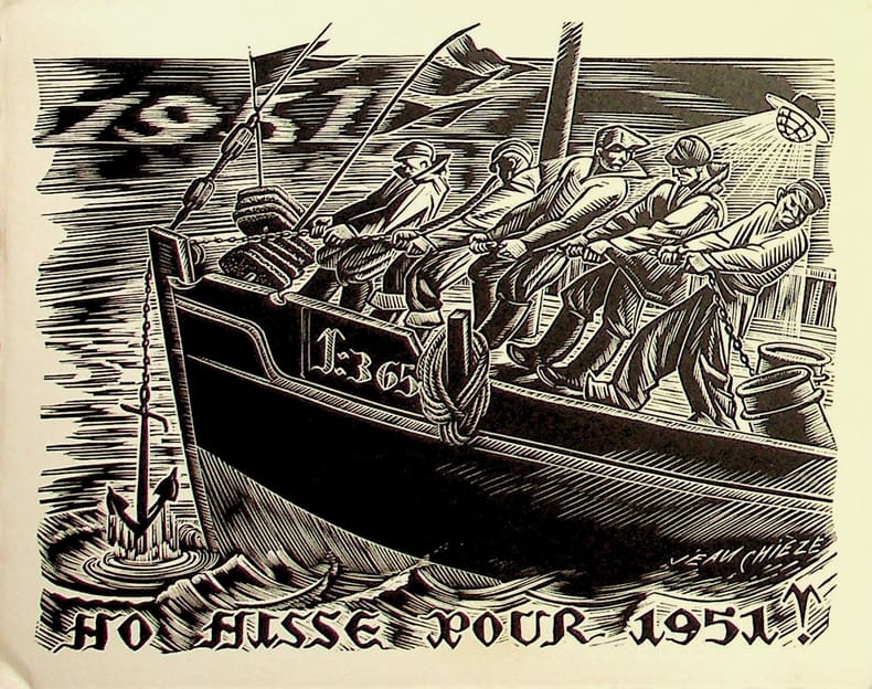 Jean Chièze (1898-1975), graveur. Gravure sur bois, 1951, environ 120*150mm. Carte de voeux pour 1951. Traces de collage au dos. [481]