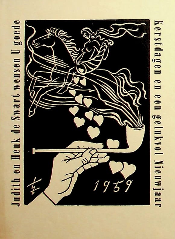 Heinrich Ilgenfritz (1899-1969), artiste allemand, graveur. Gravure, 1959, environ 135*100mm. Carte de voeux. [481]