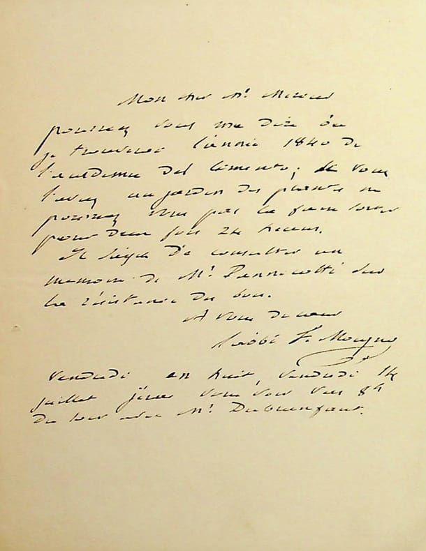 François Moigno dit l'abbé Moigno (1804-1884), prêtre, mathématicien. L.A.S., sd, 1p in-12. A M. Mercier. Il souhaite consulter un mémoire de Mr Pannicotti [probablement Antonio Pacinotti] dans les volumes de l'Accademia del Cimento. [482]